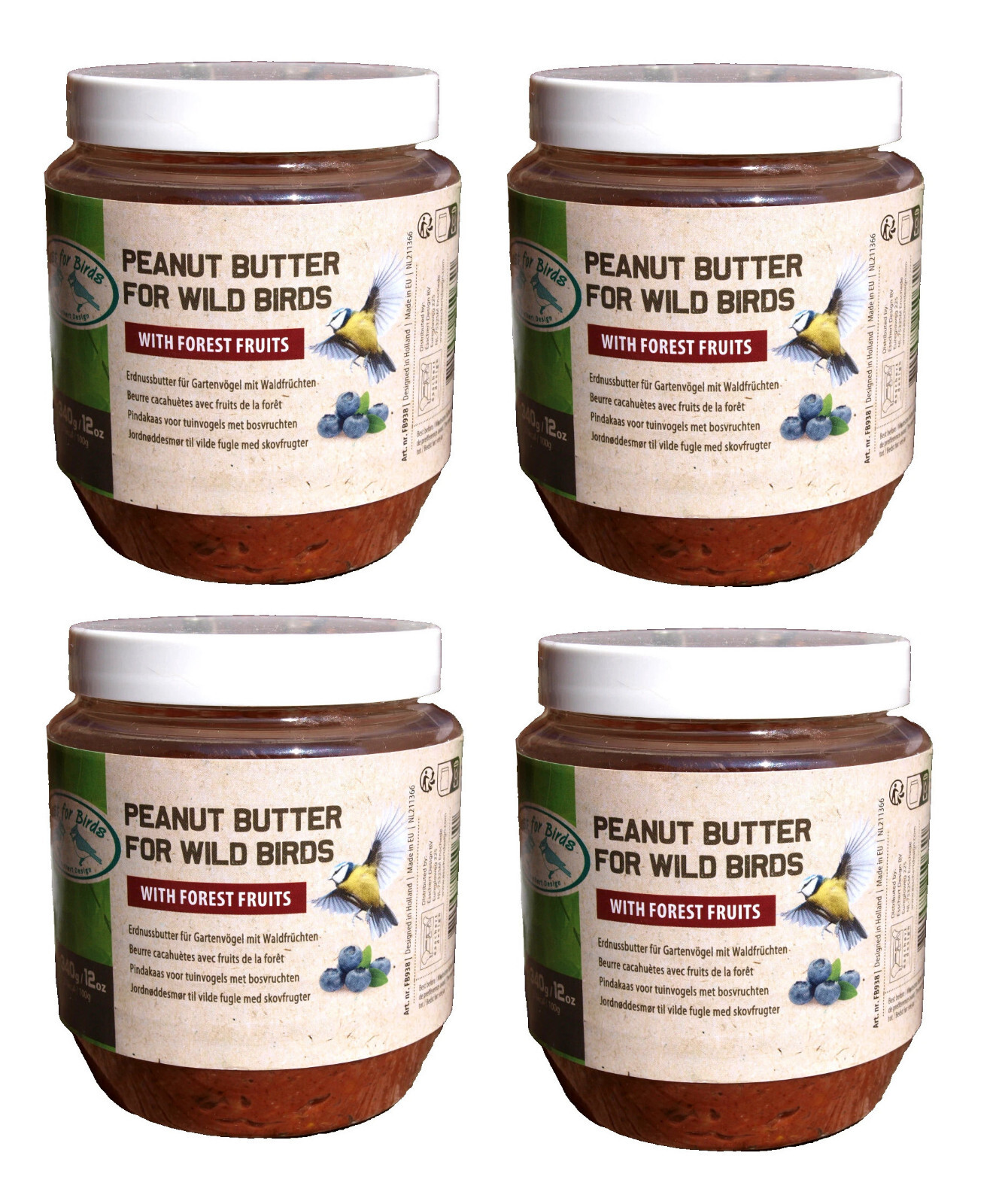 4x Wildvogelfutter Erdnussbutter Waldfrucht (Heidelbeere) im PET Glas